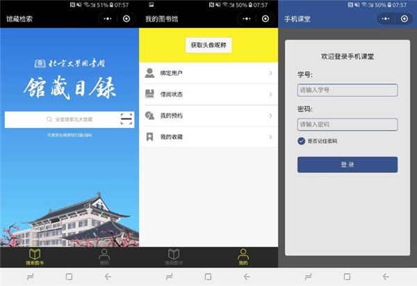 我的朋友,一名北大的研究生已经用上了接入北大图书馆系统的小程序,在“北京大学图书馆”小程序绑定校园卡号后就可以预约图书,查询借阅状态。