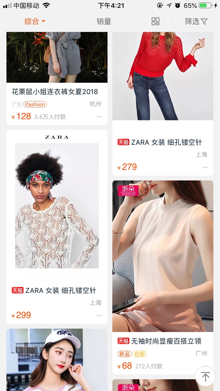 典型例子:淘宝的女装列表页和京东的女装列表页